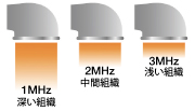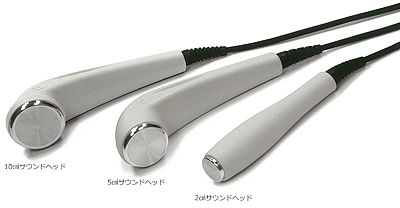 治療部位に合わせ3種類(2cm²、5cm²、10cm²)のサウンドヘッド(超音波プローブ)が使用できます。標準で2cm²、5cm²のサウンドヘッドが本体に添付されています。※10cm²はオプション